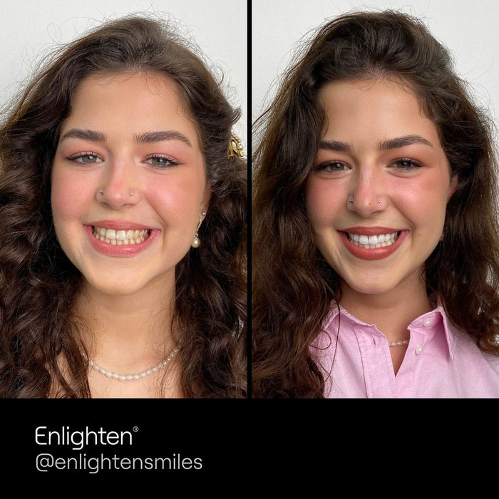 Alma is an avid coffee drinker, which goes hand in hand with her job being an artist! Alma noticed that after many years of drinking coffee, she could notice considerable staining on her teeth. She underwent Enlighten whitening in the hope of removing the years of staining. Her results speak for themselves and can continue to drink coffee with Enlighten's no white diet promise!